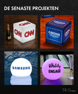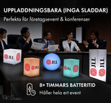 Våra lampor och bordsdekorationer är framtagna för företagsevent. Ingen montering krävs. De är fjärrstyrda, och har 16 färgalternativ.