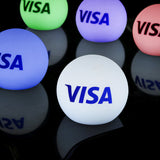 Anpassad bordsdekoration med varumärke, rund sfär, ramlös LED-ljuslåda med logotyp för mässa, företagsevent, prisutdelning