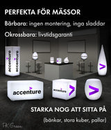 Våra lampor och bordsdekorationer är framtagna för företagsevent. Ingen montering krävs. De är fjärrstyrda, och har 16 färgalternativ.
