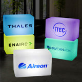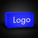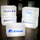 Anpassad ljuslåda med logotyp, upplyst LED-kub, bänk, stol, sits, märkt ramlös ljusskylt för utställning, utställning, mässa