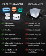 Jämfört med andra lampor på marknaden är PK Greens lampor trådlösa, okrossbara och spricksäkra. Vi erbjuder livstidsgaranti på våra lampors konstruktioner.