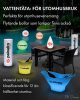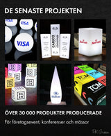 Våra lampor och bordsdekorationer är framtagna för företagsevent. Ingen montering krävs. De är fjärrstyrda, och har 16 färgalternativ.