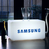 Upplyst LED Bänk med Eget Tryck, Trådlös Ljuslåda Pallsits för Marknadsföring