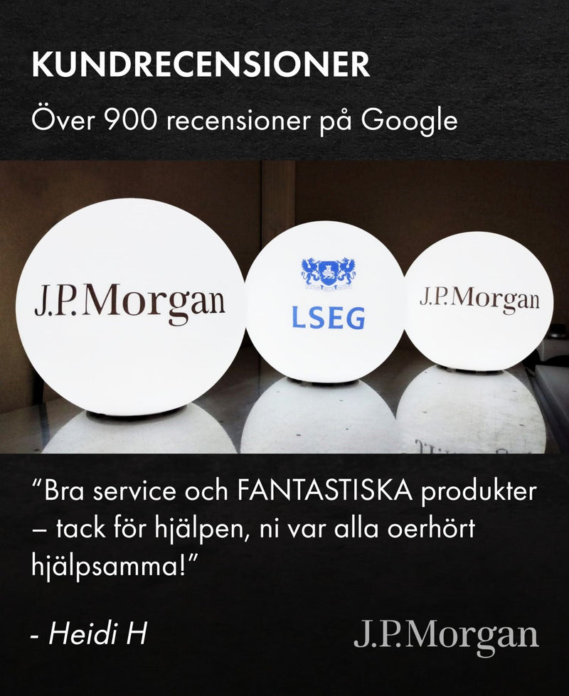 Våra lampor och bordsdekorationer är framtagna för företagsevent. Ingen montering krävs. De är fjärrstyrda, och har 16 färgalternativ.